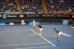aufspielenden Gegner ankämpfen, sondern auch gegen tief fliegende Schwalben, die sich kleine Flatterinsekten über dem Platz schnappten, überfliegende Armeeflieger, die zu Ehren des Australia Day