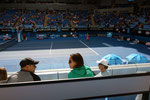 Und man erkennt schon auf dem letzten Foto, was uns nach Melbourne getrieben hat. Nämlich das Australian Open. Nach dem letztjährigen Sieg von Stan Wawrinka, hofften wir natürlich auf den einen oder anderen Schweizermatch, den wir vielleicht live sehen könnten. Am 23. Januar spazierten wir zum Eingang der Tennisanlage und tatsächlich gab es noch Tickets. 4. Reihe – von unten!!